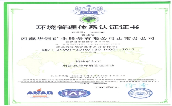 七、加强环境管理,建成西藏自治区矿山企业第一家开展ISO环境管理标准贯标和通过认证的矿山。